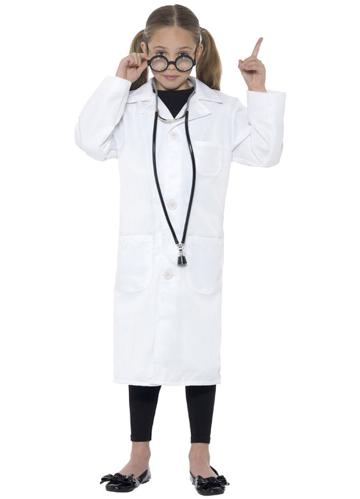Unisex white lab coat costume perfect for a scientist or doctor outfit with three pockets and buttoned up front.