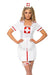 Nurse instant kit consisting of white lace apron with printed red cross design, matching headpiece & white lace garter with mini red bow.