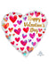 Patterned hearts Happy Valentine's Day foil balloon measuring 17" (43 cm) when inflated.