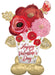 Large decorative Happy Valentine's Day flowers floor standing balloon measuring 134 cm (53 in) tall.