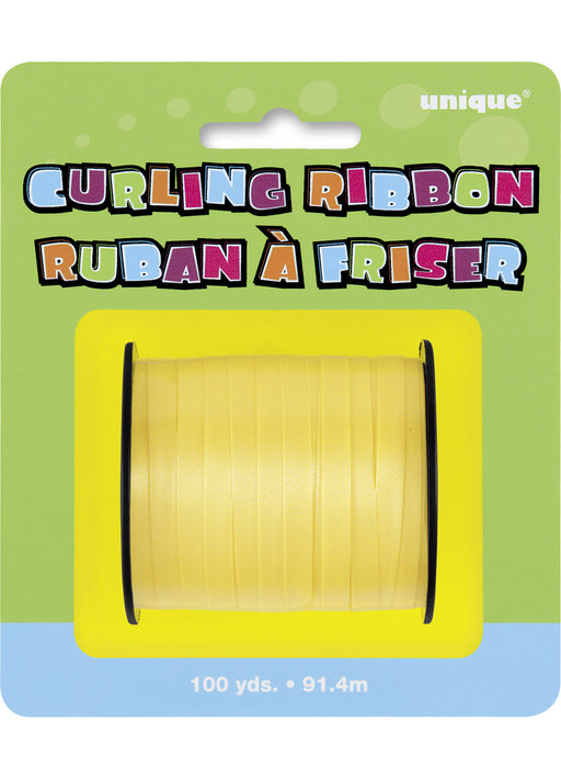 100 yds of yellow curling ribbon. Ideal for balloons or gift packages.