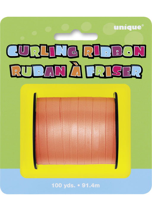 100 yards / 91.4 metres of orange curling ribbon for balloons or gift packages.
