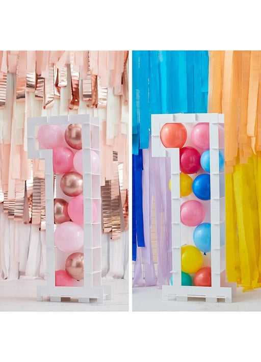 White number 1 balloon frame at 85 cm tall and 25 cm wide. Comes with easy how to assembly instructions. You will need 5 inch balloons for this pro...
