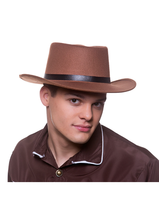 One sized dark brown distressed faux leather cowboy hat with lace tie.