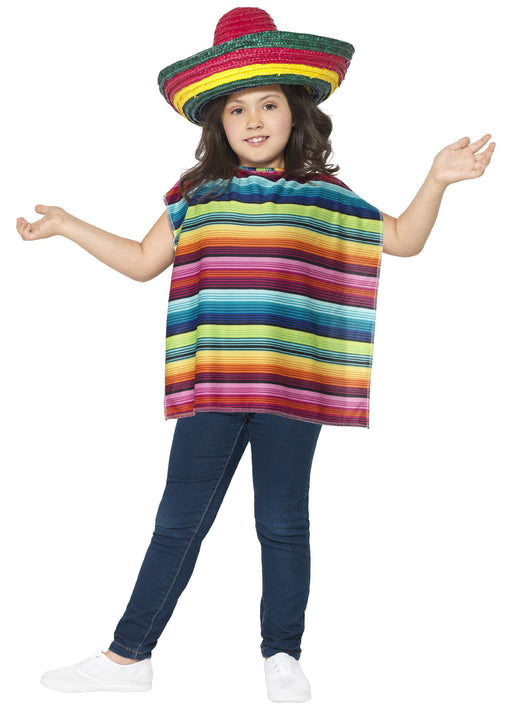 Mexican themed instant kit consisting of multi-coloured sombrero & matching striped poncho. Costume kit comes in one standard size.