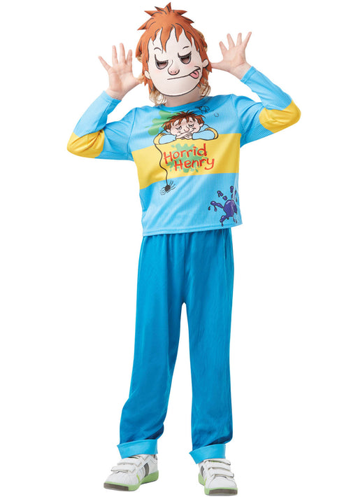 Horrid Henry licensed costume with printed top, elasticated trousers and face mask. A great fancy dress idea for Book Week. Age Height 5-6 yea...