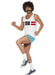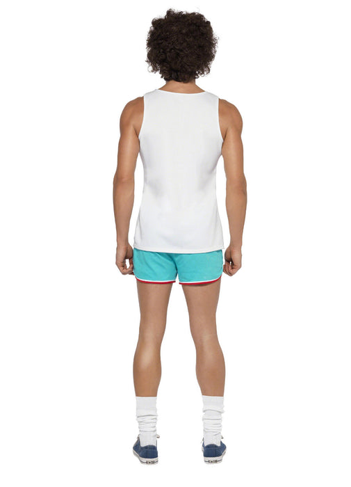 These truly novel 118118 fancy dress outfits include a pair of blue short with red trim and a white vest with 118 printed on it.