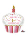 1st birthday girl super shape foil balloon decorated with pink stripes, stars & holographic design measuring 29" x 36".
