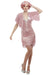 Deluxe 1920's pink flapper fancy dress costume with v-neck dress with fringes and matching stole.
