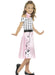 1950's Poodle Girl costume consisting of long pink dress with black and white polka dot top, black plastic belt with buckle & pink neck scarf.