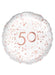 17 inch round rose gold patterned 50th birthday foil balloon.