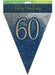 60th birthday metallic glitter navy gold party flag bunting banner measuring 3.9 metres long.