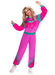 Women's 1980's shell suit fancy dress costume with pink, green and purple top with front zip along with matching elasticated trousers.