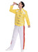 In the style of the great musician Freddie Mercury this costume is iconic as it's similar to the one worn by him at Wembley in 1986. With yellow PVC jacket with gold fastening buckles and a pair of white elasticated trousers with a red and gold stripe all you'll need to complete the look is a moustache and microphone!
