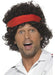 This brown curly wig is medium length and finished with red headband in the style of the eighties tennis player.