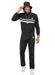 1990's style MC tracksuit costume consisting of black elasticated trousers with leaf logo & matching zip up tracksuit jacket.