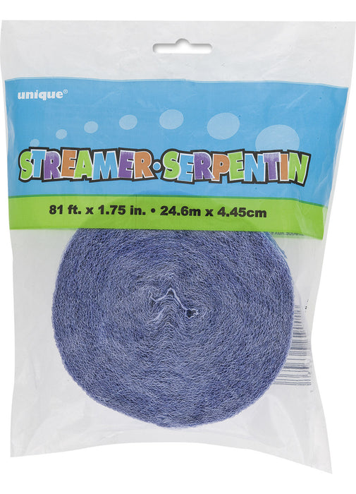 Crepe streamer measuring 4.4cm x 24.6m or 1.75in x 81ft.