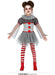 Available in 4 sizes this bad clown Halloween outfit comes with a layered dress in 2 shades of grey with red baubles and trim, netted arms and attached clown collar along with pair of red and off white leggings.