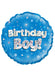 Blue Birthday Boy holographic standard round foil balloon measuring 18" (45.7 cm) when inflated. Made in UK.