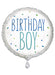 Birthday Boy 18" circle shaped helium balloon printed both sides.