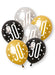 Pack of 6 age 30 Birthday Black Glitz 12" latex pearlized balloons in assorted colours. Printed all over. Supplied deflated and suitable for air or helium inflation.