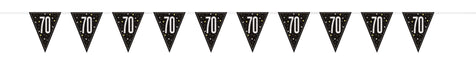 2.74 m/9 ft long Black Glitz 70th happy birthday plastic bunting.