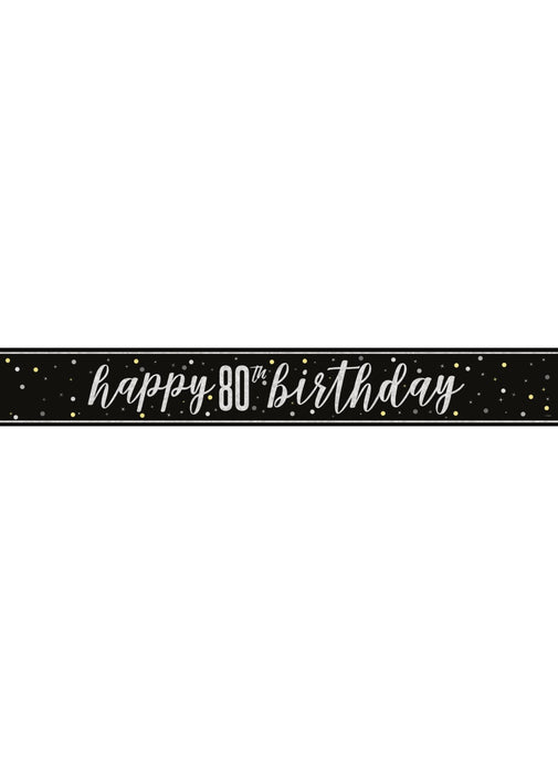 Click to expand Tap to zoom Black Glitz 80th Birthday Banner Save £-1.49 £1.49 SKU U82267 1 2 3 4 5 6 7 8 9 10+ Quantity Quantity ADD TO BASKET 9ft / 2.74m long age 80 Birthday Black Glitz banner printed one side.