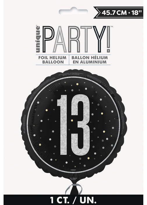 Black Glitz Age 13 Foil Balloon