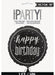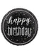 Black Glitz Happy Birthday 18" circle shaped helium balloon printed both sides.