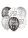 Pack of 6 Happy Birthday Black Glitz 12" latex pearlized balloons in assorted colours. Printed all over. Supplied deflated and suitable for air or helium inflation.