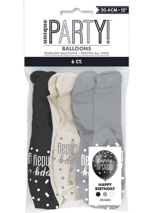 Black Glitz Happy Birthday Latex Balloons 6pk