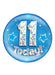 Holographic blue I Am 11 Today! 15 cm large birthday badge. You can pin it on or stand it up!