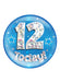 Holographic blue 12 Today! 15 cm large birthday badge. You can pin it on or stand it up!