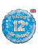 Blue age 12 holographic standard round foil balloon measuring 18" (45.7 cm) when inflated. Made in UK.