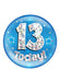 Holographic blue 13 Today! 15 cm large birthday badge. You can pin it on or stand it up!