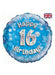Blue age 16 holographic standard round foil balloon measuring 18" (45.7 cm) when inflated. Made in UK.