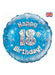 Blue age 18 holographic standard round foil balloon measuring 18" (45.7 cm) when inflated. Made in UK.