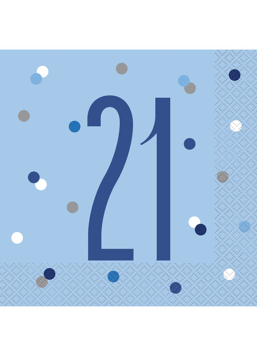 Click to expand Tap to zoom Blue Glitz Age 21 Napkins 16pk Save £-1.99 £1.99 SKU U83556 1 2 3 4 5 6 7 8 9 10+ Quantity Quantity ADD TO BASKET Pack of 16 luncheon 21st Birthday Blue Glitz napkins. 2 ply. 33 x 33cm.