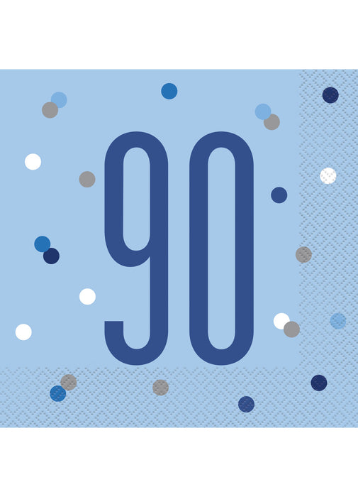 Click to expand Tap to zoom Blue Glitz Age 90 Napkins 16pk Save £-1.99 £1.99 SKU U83563 1 2 3 4 5 6 7 8 9 10+ Quantity Quantity ADD TO BASKET Pack of 16 luncheon 90th Birthday Blue Glitz napkins. 2 ply. 33 x 33cm.