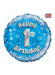 Blue age 1 holographic standard round foil balloon measuring 18" (45.7 cm) when inflated. Made in UK.