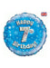 Blue age 7 holographic standard round foil balloon measuring 18" (45.7 cm) when inflated. Made in UK.