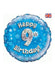 Blue age 9 holographic standard round foil balloon measuring 18" (45.7 cm) when inflated. Made in UK.