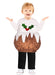 Christmas Pudding children's costume consisting of soft feel tabard with holly decoration. Available in seven different sizes. Model is wearing own t-shirt and trousers.