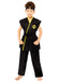 Officially licensed Cobra Kai karate Gi costume with black ninja patterned top, trousers, belt and headband.