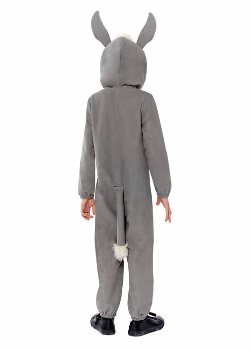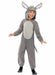 Children's Christmas Nativity donkey costume with grey jumpsuit with character hood and tail. Available in 5 sizes.