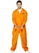 This Escaped Prisoner costume consists of orange boiler suit with front zip and printed convict number on left breast and on the back the words EASY JAIL.