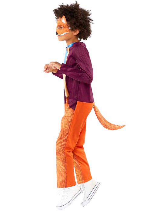Roald Dahl licensed Fantastic Mr Fox classic costume consisting of all in printed jumpsuit, tail, mask and bookmark.