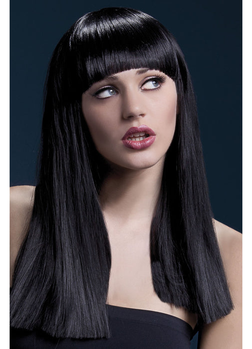 From the Fever Wig Collection comes this deluxe professional quality synthetic Alexia long blunt cut wig with fringe in black measuring 48 cm.