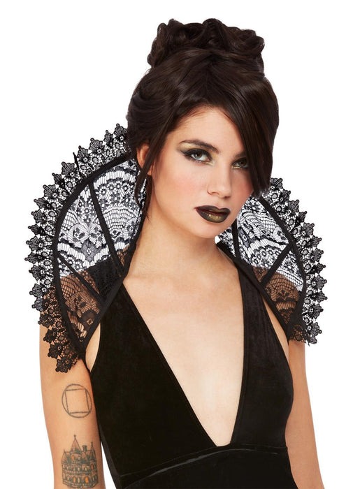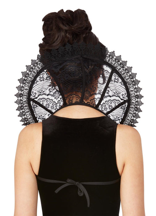 Dramatic Halloween black Gothic style lace stand up collar with black tie.