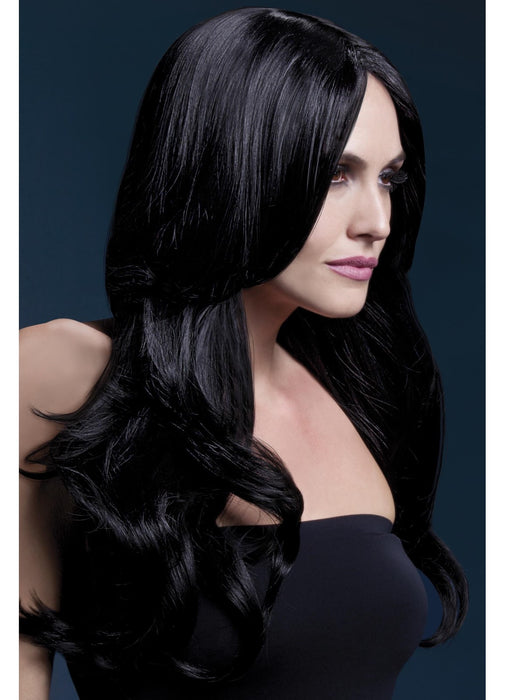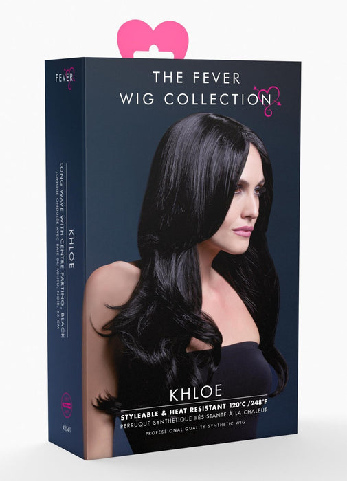 From the Fever Wig Collection comes this deluxe professional quality synthetic Khloe long wave centre parting wig in black measuring 66 cm.